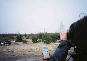 Dieses ist die Gegend des Atomkraftwerks. Der Messwert des Geigerzähler hier ist auch 500-3000 Microröntgen pro Stunde.