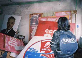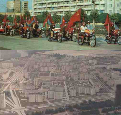Das ist eine Motorradparade von 1985. Sie fahren alte russische Wimpelbikes, viele Dinge haben sich seit 1985 geändert, und eines davon ist die Technik. Meine grosse Ninja hat mehr Kraft als einige von den Alten Bikes zusammen.