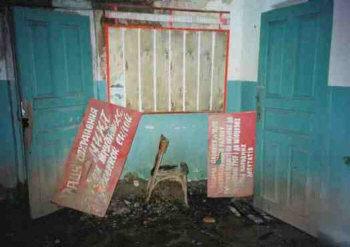 Die Tür auf der rechten Seite ist der Freigetränkraum und Tür auf der linken ist der Wahlraum. Ein alter Mann der mir diese Geschichte erzählte konnte sich aber nicht mehr genau erinnern ob am Tag nach den Wahlen von den Behörden ein Feiertag festgelegt wurde oder nicht, damit die Wähler Zeit hatten sich auszunüchtern, bevor sie wieder zur Arbeit gehen.